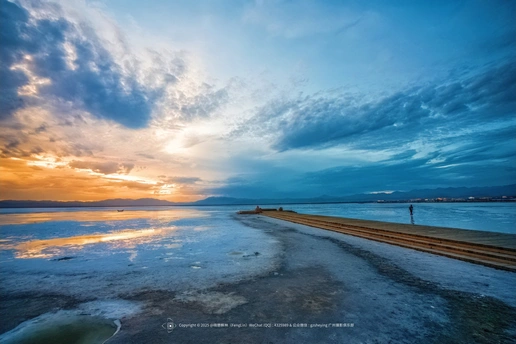 青海海西茶卡盐湖的日落晚霞风光,是天空之境的终极浪漫💫 踩在洁白盐盖上 脚下倒映着整片天空 仿佛行走在云端 夕阳缓缓沉入地平线 整片盐湖被染成橘粉色 水面倒映着火烧云 天地间只剩下温柔的暖光 风轻轻吹过 水面泛起细碎涟漪 像是撒了一把碎钻 美到失语 日落时分的茶卡,是此生必看的温柔。 📸 拍摄tips: · 穿亮色长裙 风吹过超仙 · 租双鞋套 走进湖心拍倒影 · 抓住日落前黄金半小时 茶卡盐湖,茶卡盐湖日落,日落,青甘大环线,天空之境,日落风光,晚霞,夕阳,地平线,盐湖,湖泊,风光,风景,自然风光,旅拍,旅游,旅行,朝霞,天空,云彩,云,风光摄影,风景摄影,蓝调,蓝调时光,火烧云,水面,倒影,茶卡,晓憩枫林