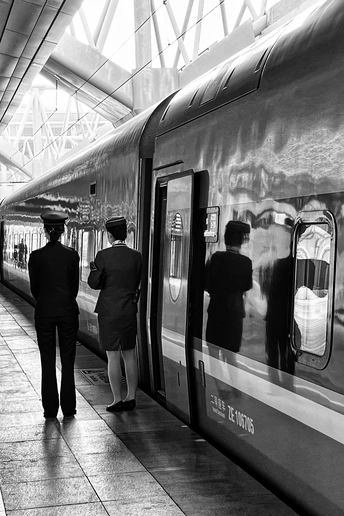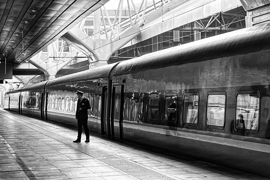 图二这张黑白照片捕捉了火车站台的瞬间,颇具纪实风格。咱们来逐个环节剖析一下,看看如何更上一层楼: 色彩:黑白影调统一,但灰阶层次可以更丰富些,让画面更有呼吸感。 光影:光线略平,缺乏戏剧性。可以尝试在一天中不同时段拍摄,捕捉更有趣的光影效果,比如日出或日落时分的斜射光。 构图:整体构图四平八稳,但稍显平淡。可以尝试使用引导线(比如站台边缘)将观众视线引向画面深处,或者改变拍摄角度,让画面更有冲击力。 后期处理:后期可以加强对比度,突出黑白反差,但要避免过度锐化,否则会显得生硬。 主题原创性:题材比较常见,但可以尝试从独特的视角切入,比如关注人物的表情和动作,捕捉更具故事性的瞬间。 情感共鸣:略显平淡,缺乏情感冲击力。可以尝试捕捉更具情绪化的瞬间,或者通过构图和光影来营造氛围。 思想深度:可以挖掘更深层次的主题,比如探讨旅途的意义、人与人之间的关系等等。尝试用更具象征性的手法来表达主题。 总的来说,照片基本功扎实,但缺乏亮点。继续努力,尝试不同的拍摄手法和视角,相信你会拍出更精彩的作品!