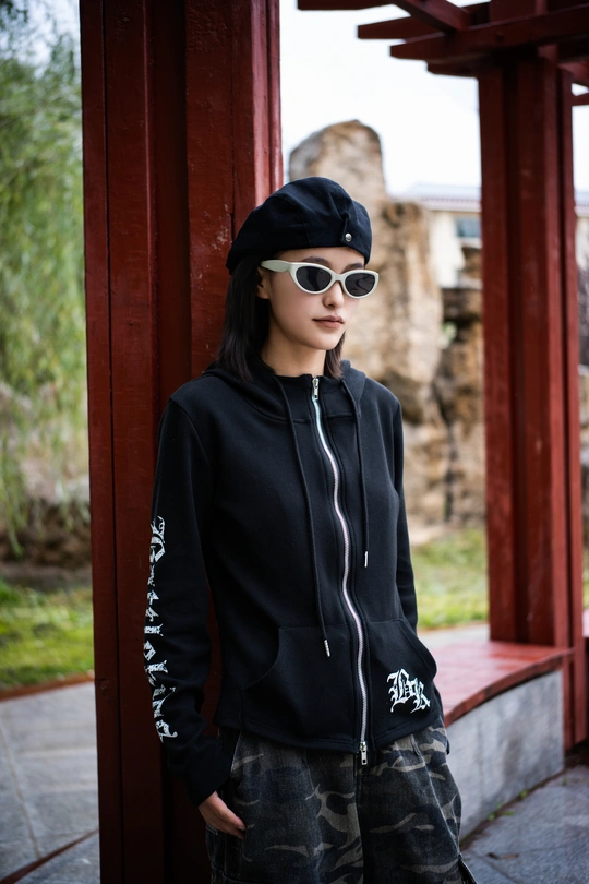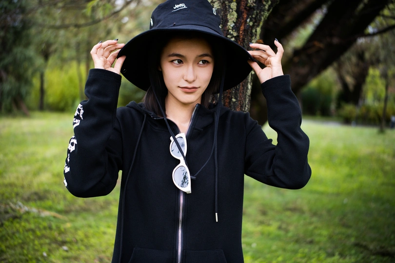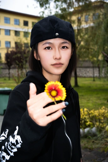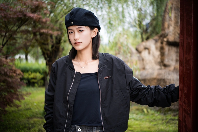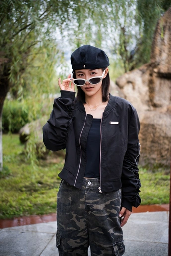 秋意裹着风撞进镜头,黑调穿搭是松弛的注脚。贝雷帽压着碎发,夹克漫不经心敞开,连墨镜滑落的弧度都刚好。 树影晃过帽檐,花茎勾着指尖——把日常的随性,酿成独一份的「酷系温柔」。