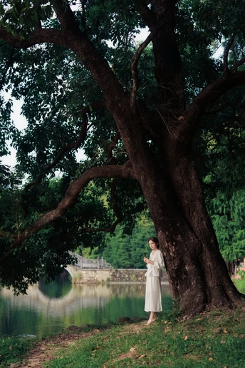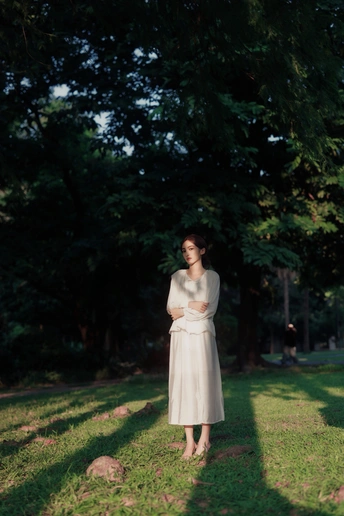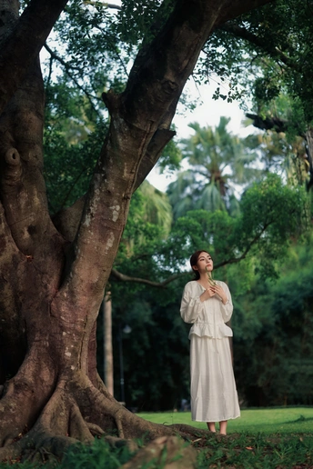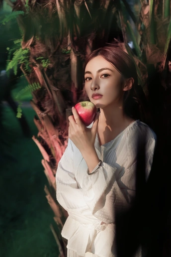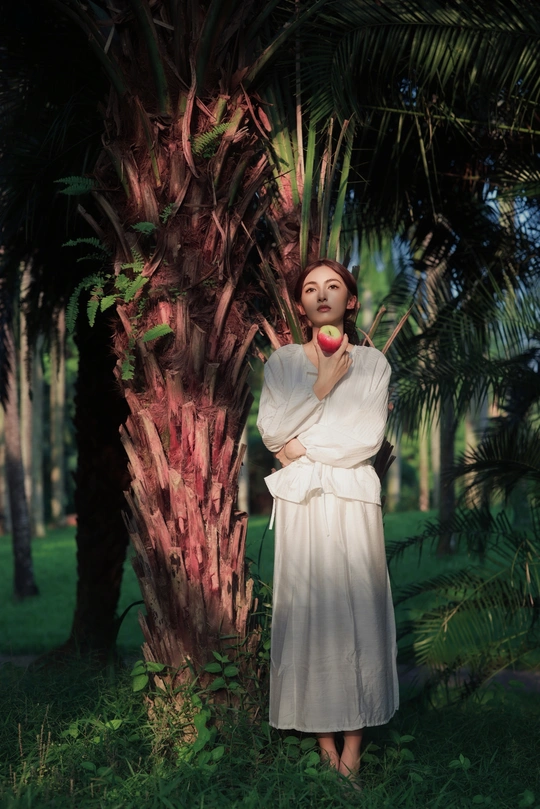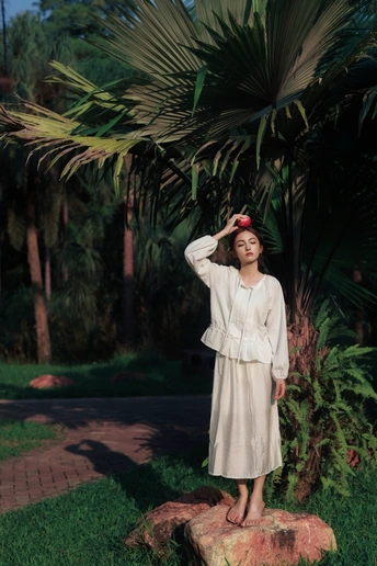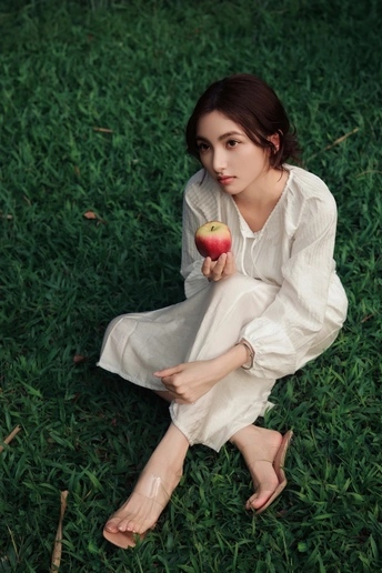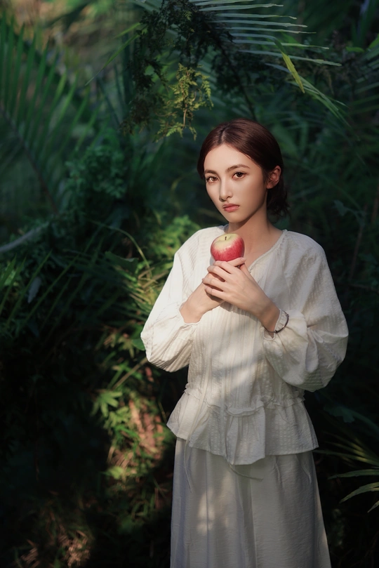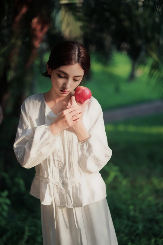 林隙漏下的光, 裹着一枚红蘋的影子, 和白裙一起, 赖在初秋的风里。