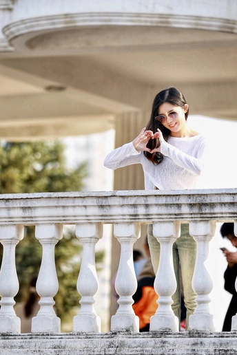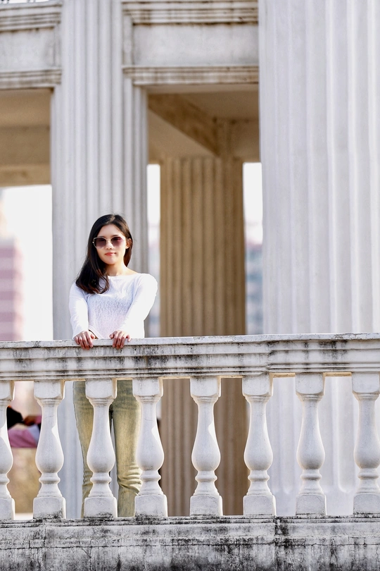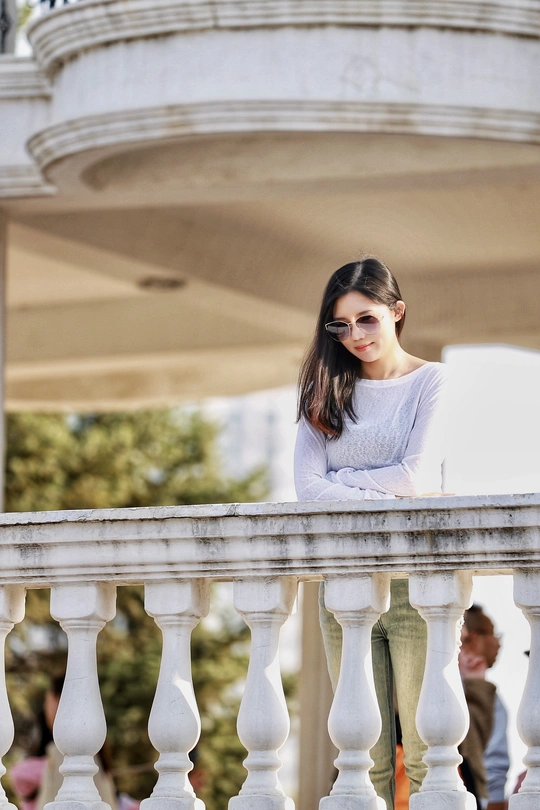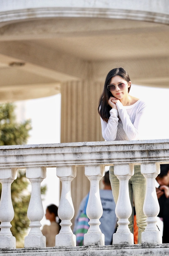 图二:色彩:色彩整体比较柔和,以白色和米色为主,营造了一种温馨的氛围。但是,略显平淡,可以考虑在后期稍微增加一些饱和度,让色彩更鲜明。 光影:光线比较均匀,但缺乏一些戏剧性。如果能等到更有角度的光线,比如日落时分的侧光,可能会让人物更有立体感。 构图:构图上主体人物放在中间,比较稳妥,但略显呆板。可以尝试三分法构图,或者稍微倾斜一下角度,增加画面的趣味性。另外,前景的栏杆略微有些抢镜,可以考虑虚化一下。 后期处理:后期处理比较自然,没有过度修饰的痕迹,这点值得表扬!但可以尝试调整一下曲线,增加一些对比度,让画面更有层次感。 主题原创性:主题比较常见,就是人物照。如果能加入一些更具创意的元素,比如特殊的道具或者场景,可能会让照片更出彩。 情感共鸣:小姐姐的笑容很有感染力,能够引起观者的好感。但可以尝试捕捉更自然、更真实的情感瞬间,比如抓拍一些不经意的表情。 思想深度:照片主要表达的是一种美好的情感,思想深度略显不足。可以尝试通过照片表达一些更深层次的主题,比如人与自然的关系,或者对人生的思考。 总的来说,这张照片还不错,但还有很大的提升空间。希望我的建议能对你有所帮助!继续加油,期待你更