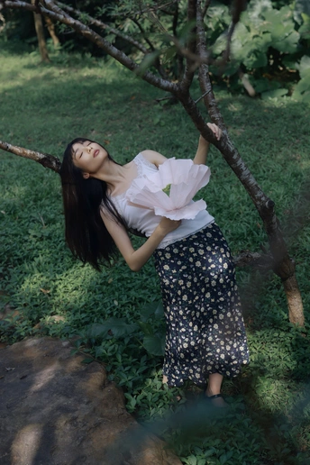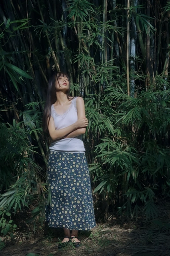 竹林、微风、小裙子, 是属于这个季节的松弛感。 不用刻意找角度, 风会把画面吹得刚好。