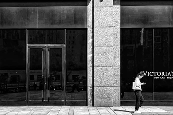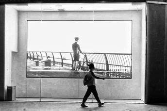 图一这张黑白摄影作品捕捉到了有趣的街头瞬间。下面是详细评价: 色彩:黑白影调简洁明快,减少了色彩干扰,更突出光影和线条,但损失了色彩可能带来的情感表达。 光影:光线均匀,但在玻璃反光处略显杂乱。可以尝试寻找更有戏剧性的光线,比如侧光或逆光,来增强画面层次感。 构图:构图较为平衡,但主体(行人)略显靠边。可以尝试稍微调整构图,将行人放在画面中心或黄金分割点附近,以更突出主体。 主题原创性:主题具有一定的趣味性,行人与广告牌形成对比,引发对现实与虚拟的思考。但可以更深入挖掘主题,尝试更独特的视角和表达方式。 情感共鸣:照片传达了一种都市生活的孤独感,但情感表达较为含蓄,可以尝试通过更生动的瞬间和更具表现力的光影来增强情感共鸣。 思想深度:照片引发了对商业文化与个体存在的思考,但思想深度还可以进一步挖掘,比如通过更隐喻性的手法来表达更深刻的社会议题。