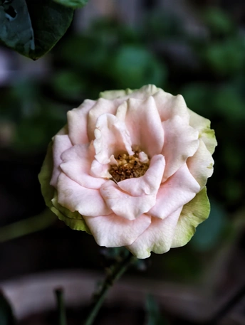 在时光的角落,这朵月季以淡粉与嫩绿交织的姿态绽放,如一首温柔的小诗,在镜头下,将片刻的美好定格成永恒的浪漫。
