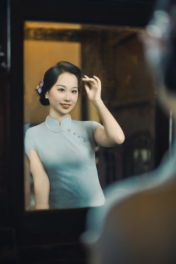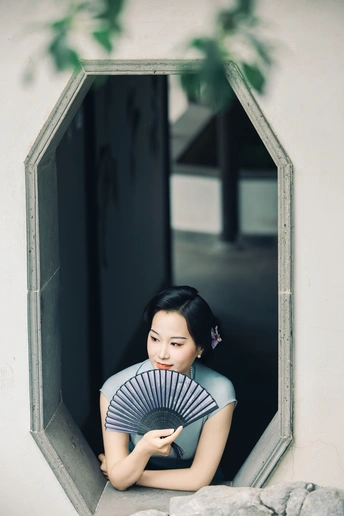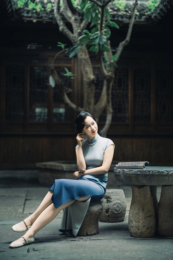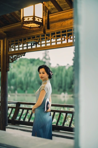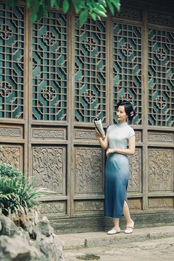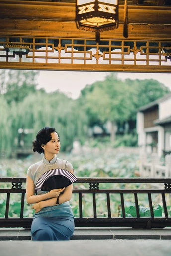 《金陵秋裳吟》 金陵霜枫映朱阑,愚园秋水绕画檐。 竹影斜簪碧玉簪,曲廊漫抚锦瑟弦。 蓝裳翩若惊鸿影,素手轻遮团扇面。 一眸清露浸梧桐,半卷诗笺诉流年。 出镜:小穆 妆造:小金 摄影:许摄 器材:佳能R62+RF50 1.2+RF70200 2.8+永诺40瓦