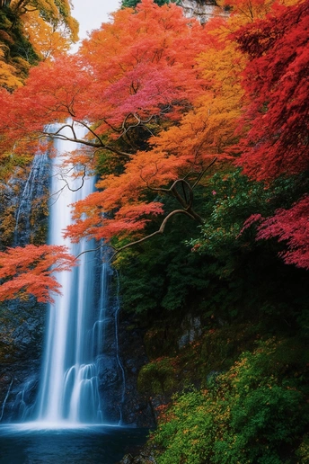 秋天来了,山林染上了暖色调,枫叶红得像火一样,一阵风吹过,片片飘落。瀑布从山间奔腾而下,水声清亮,像是在诉说季节的故事。走在这景色里,心也跟着变得柔软起来。
