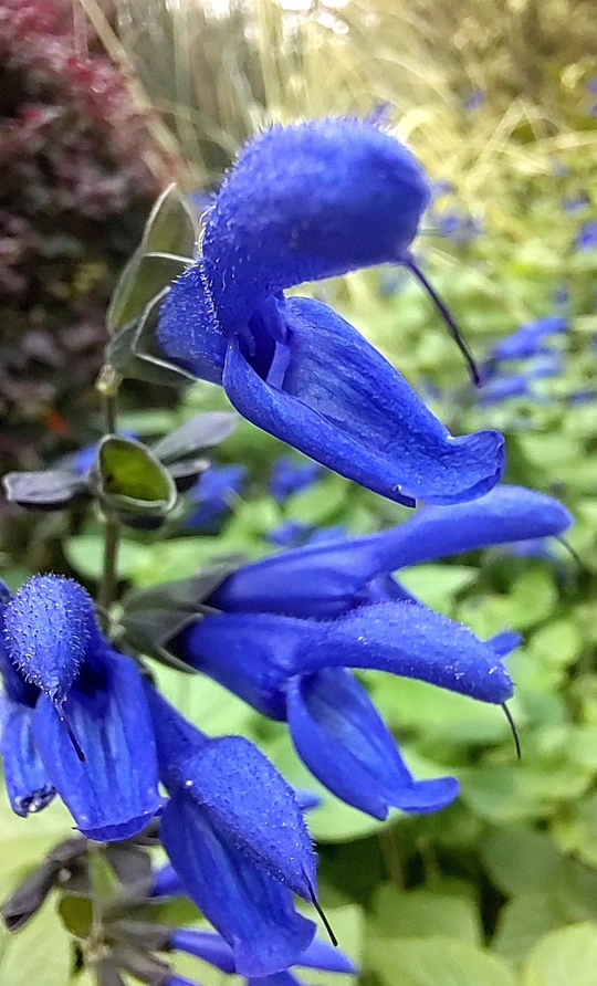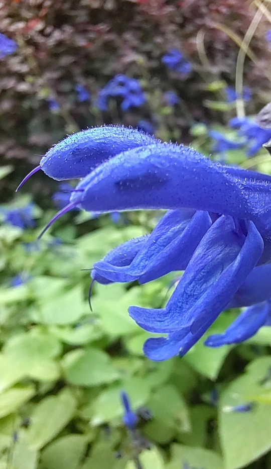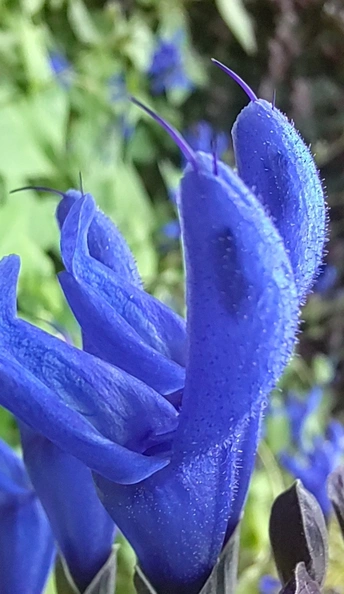 此花学名为深蓝鼠尾草。原产于南美洲,现在我国已有种植。其花以极深的蓝、紫色和特殊形态而颇受关注与喜爱。