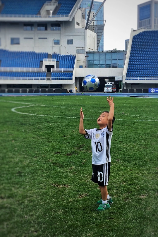 图一这张照片捕捉了一个孩子在足球场上玩耍的瞬间,充满了活力和童趣。下面是详细的评价和一些建议: 色彩:整体色彩偏自然,草地的绿色和球场的蓝色形成了对比,但色彩略显平淡,可以考虑在后期稍微增强色彩饱和度,使画面更鲜活。 光影:光线比较柔和,没有明显的阴影,使得画面缺乏一些层次感。尝试在不同的光线条件下拍摄。 构图:构图上将孩子放置在画面下方,上方留有较大空间,突出了孩子与足球的互动,但整体构图略显普通。可以尝试使用三分法,将孩子放在画面的黄金分割点上,或者尝试不同的拍摄角度,例如低角度拍摄,以增强画面的视觉冲击力。 后期处理:后期处理方面可以适当调整对比度和亮度,使画面更清晰。注意不要过度修饰,保持照片的自然感。 主题原创性:主题比较常见,拍摄的是孩子玩耍的场景。可以尝试加入一些更具创意的元素。 情感共鸣:照片传达了孩子对足球的热爱和快乐,能够引起一定的共鸣。尝试捕捉更多孩子的情绪,例如兴奋、专注等,使照片更具感染力。 思想深度:照片的思想深度相对较浅,主要是记录生活瞬间。如果想提升照片的深度,可以尝试挖掘更深层次的主题,例如孩子的梦想、团队合作精神等。