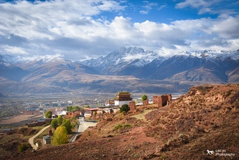 站在山坡上,欣赏着远处的雪山与山下的甘孜县城,体会着高原小城不一样的美。
