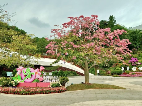 十一月的广州云萝植物园,藏着南国独有的温柔。暖阳透过层叠枝叶洒下斑驳光影,三角梅热烈绽放,异木棉缀满粉白花瓣,微风裹挟草木清香拂面。漫步林间,听虫鸣鸟语,看锦鲤游弋,时光在此放缓,每一步都是与秋日生机的温柔邂逅。