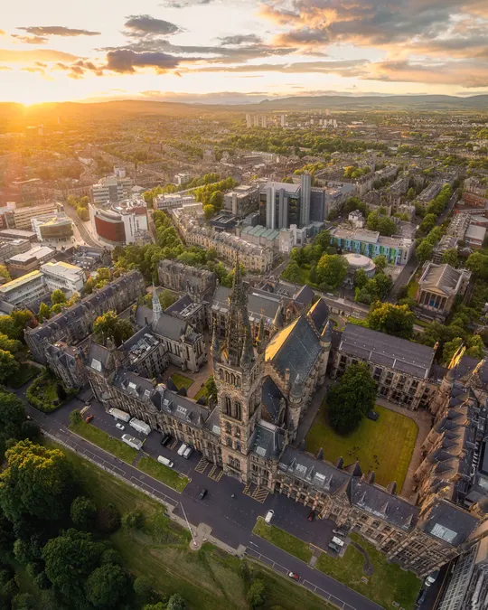 日落时分的格拉斯哥大学主楼