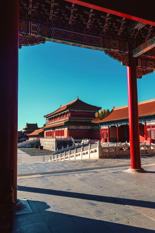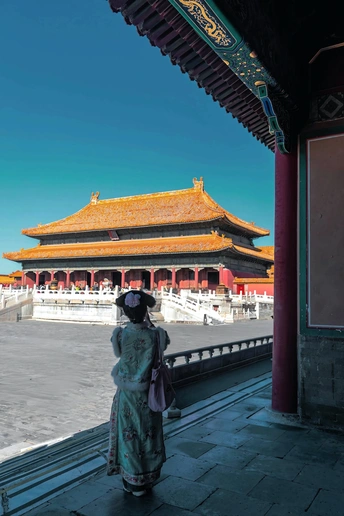 朱红宫墙如凝固的血液,承载着六百年风雨;琉璃绿瓦似翡翠波涛,在日光下流转着深浅不一的青碧。这红与绿的交响,是紫禁城最庄重的语言——红色宫墙围起九重天威,绿色瓦当泻下千顷祥瑞。