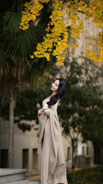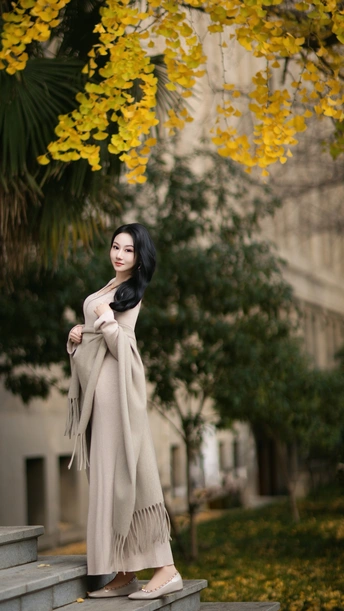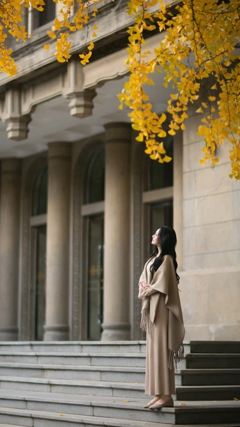 「 秋日诗行 」 光影为笔,银杏作笺。 当喷泉的水珠溅起碎金,老建筑的砖墙沉默不语,她漫步其间,便成了这首秋日诗篇里,最动人的一行。 风起时,漫天金叶如时光的私语,掠过她的发梢。身后的老建筑,是岁月沉稳的注脚;脚下流淌的喷泉,是此刻灵动的旋律。 我们捕捉的,不只是一张美好的面容,更是整个秋天,怦然心动的氛围。