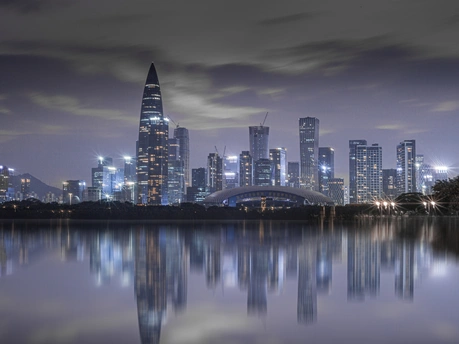 当暮色浸染深圳湾的水面,这座城市的钢筋铁骨便在夜色里绽放出璀璨锋芒。 那座刺破天际的尖塔,是野心与梦想的具象化,在夜空中勾勒出凌厉又优雅的轮廓;远处的春茧体育馆如银灰色的贝壳,在楼宇丛林间沉淀出温润质感。 霓虹与星光在水面碎成粼粼金箔,建筑的倒影在波心轻轻摇晃,仿佛城市的灵魂在水中低语。这是属于深圳的夜,一半是繁华都市的蓬勃脉动,一半是海湾静水的温柔回响,每一帧都是现代都市与自然静谧的精妙共生,每一刹都是摄影镜头捕捉到的时代光影诗。