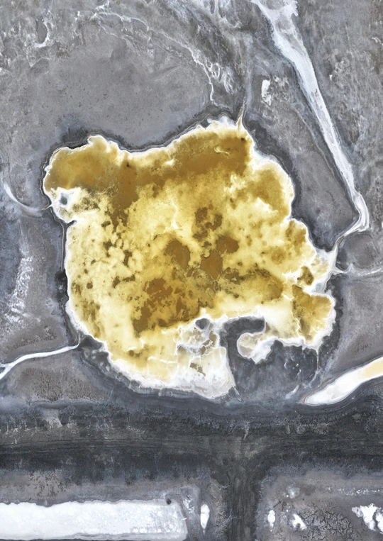 内蒙古二连浩特的荒原惊喜,盐池里的矿物质把阳光调成了金黄色。