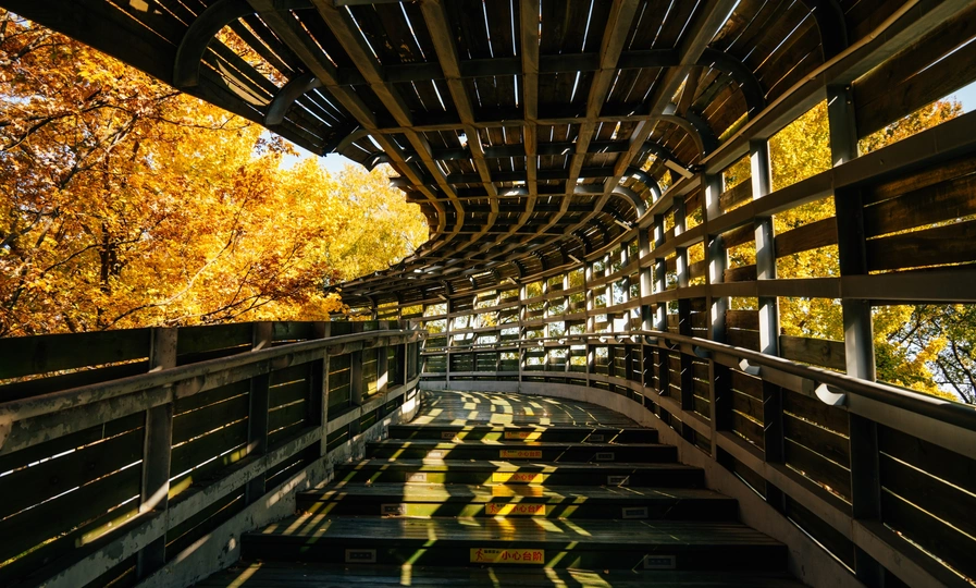 走过这座木桥便是上海的盛秋