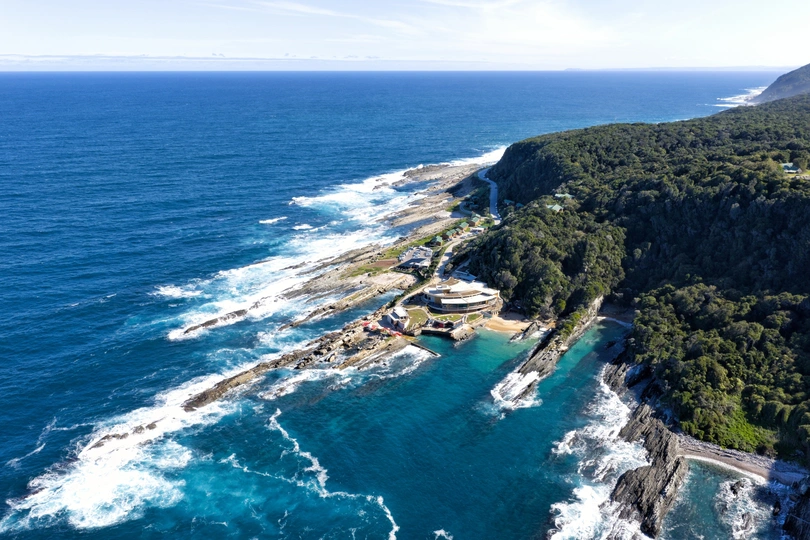 拍摄于南非齐齐卡马国家公园(Tsitsikamma National Park)内的风暴河河口(Storms River Mouth)区域,属于南非东开普省的“花园大道”沿岸。周围是原始森林与印度洋的交界地貌,也是花园大道上的标志性景点之一,以悬索桥、海岸徒步和海洋景观闻名。