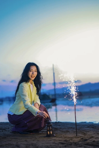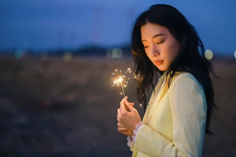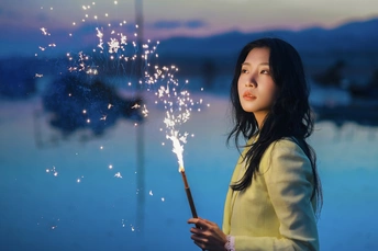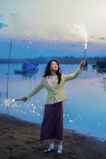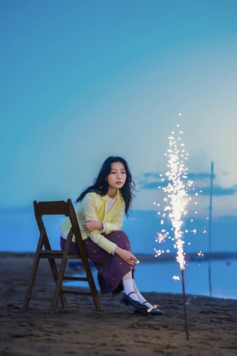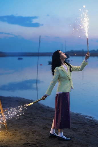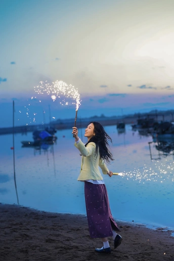 江边的风很凉,花火却很暖。 旷野这么大,我只看见你手里那一小束光。 一瞬绽放,一瞬熄灭, 却刚好照亮了这一整片温柔的夜色。