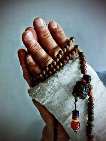 纱布缠着伤的痕, 木珠串着念的魂, 掌心相叠, 像把岁月的褶皱 轻轻拥吻。 每道纹路都刻着故事, 每颗珠子都载着虔诚, 在这沉静的光里, 疼痛与祈愿 织成了 生命的 韧与温。