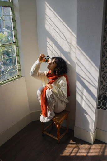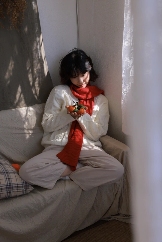老房子的窗棂,把冬天的阳光织成了温柔的网。 红围巾裹住半日慵懒,橘子糖的甜,就着旧时光一起咽下去。