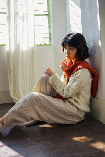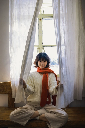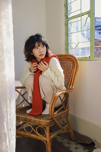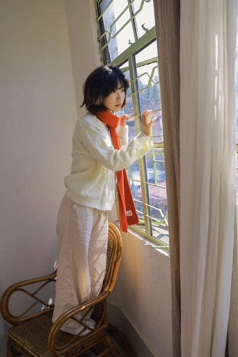 老房、晴日、红围巾