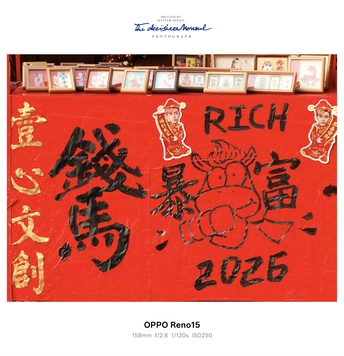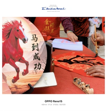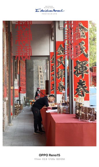 焕新后的挥春街张灯结彩,处处洋溢着喜庆的节日气氛。挥春师傅现场书写福字,吸引了络绎不绝的市民争相领取新年“福气”;醒狮表演的采青环节更是点燃全场热情,锣鼓声声将节庆氛围推至高潮;而醒狮、财神爷和可爱古仔组成的巡游队伍穿梭街巷,为街区增添了欢笑和喜悦。