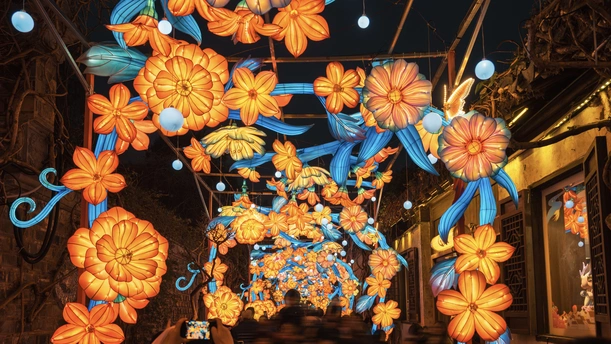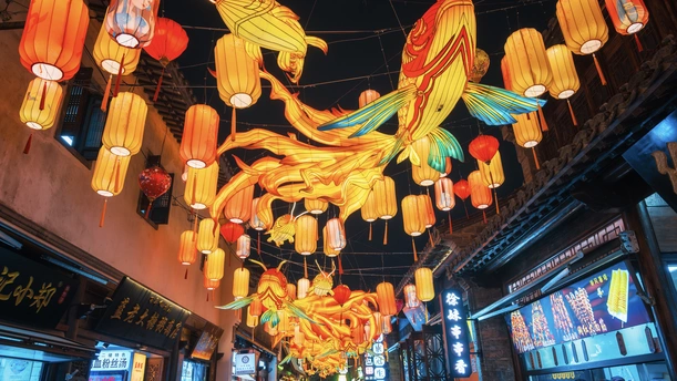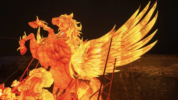 东风夜放花千树,更吹落,星如雨。 南京老门东的年味越来越浓了,结合马年灯会造型,飞马踏天、金鳞游跃,每一处都是东方美学的顶级展示。 注:五点半亮灯,建议绿色出行,提前到。