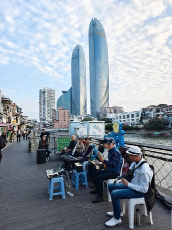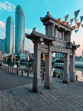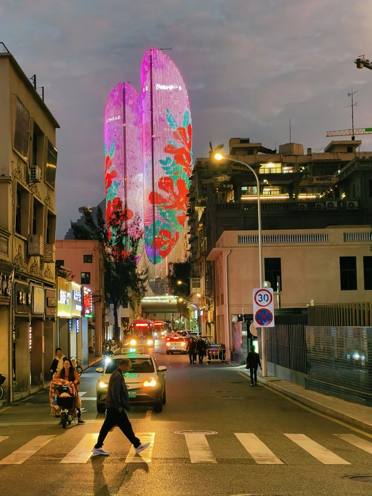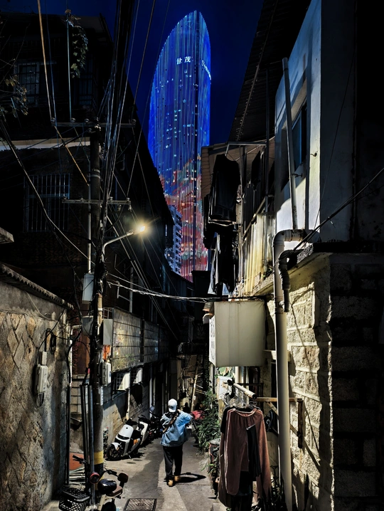 老骑楼的雕花还沾着白日的烟火气,远处的双子塔已经开始挽留最后的阳光。 电动车穿过骑楼投下的斜影,三轮车碾过柏油路上的光斑。在这里,复古与现代不是对立,而是并肩赶路的伙伴——老建筑的砖缝里藏着岁月,摩天楼的玻璃上映着未来。 生活的节奏,就在这新旧交替的街巷里,被车轮稳稳接住。