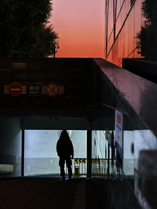 傍晚的风裹着橘红色的光,漫过城市的棱角。我站在地下通道的入口,看见一个影子正走向出口。 通道里的灯光是冷的,远处的天空却烧得热烈。我们总在寻找光的方向,却忘了有时影子比我们更勇敢。它不问终点,只顾走向亮处,像奔赴一场没有约定的告别。 这城市的每个出口,都连接着另一段黄昏。而我们都是赶路的人,在明暗交替里,和自己的影子并肩。