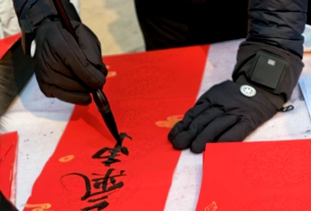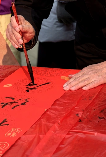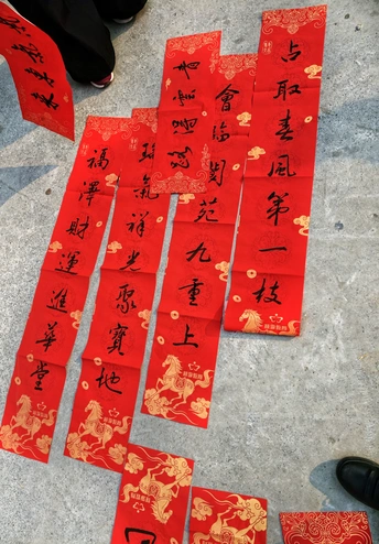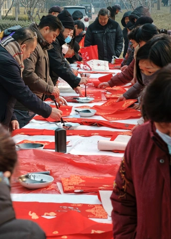 红幅铺展,毛笔蘸满浓墨,“书法家”们挥毫之间,一幅幅带着墨香的春联便跃然纸上。 手写的春联里,有“福泽财源进”的期盼,也有“春风第一枝”的新意。 领到春联的街坊们笑意融融,把这份带着温度的祝福捧在手里,也把浓浓的年意揣进了心中。 封面照片米拍ai评测:这张照片捕捉了人们书写春联的场景,红色占据主导,烘托了节日气氛。下面我从几个方面来剖析一下: 色彩:照片整体以红色为主,搭配黑色和少量白色,色彩对比强烈,视觉冲击力较强,但略显单调,缺少色彩的层次感和变化。 光影:光线较为平均,缺乏明显的光影对比,使得画面显得平淡,缺少立体感和空间感。建议尝试在光线条件更好的环境下拍摄,或者利用后期手段增强光影效果。 构图:构图较为随意,主体不够突出,画面元素略显杂乱。建议采用三分法或黄金分割等构图原则,突出主体,简化画面,使视觉中心更加明确。 情感共鸣:照片传达了喜庆祥和的节日氛围,能够引起观者的情感共鸣。如果能捕捉到人们专注书写的神态,情感表达会更加饱满。