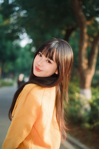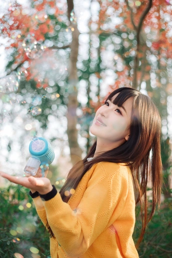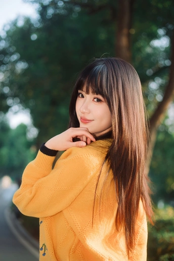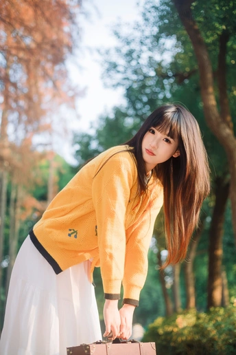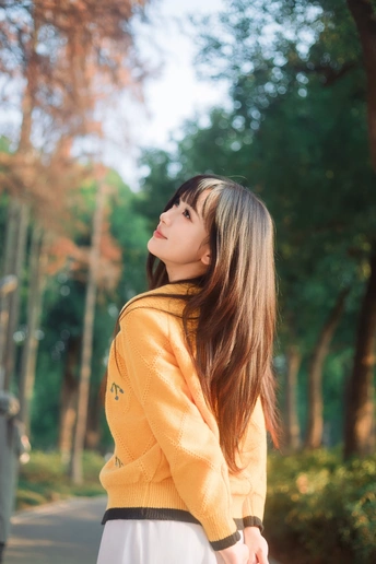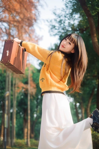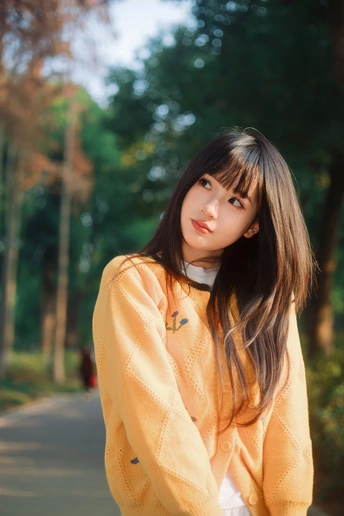 树林里浪漫的黄衣女孩