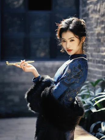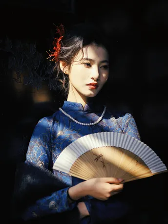 - 半是浓妆半是仙,一袭蓝衣锁清秋