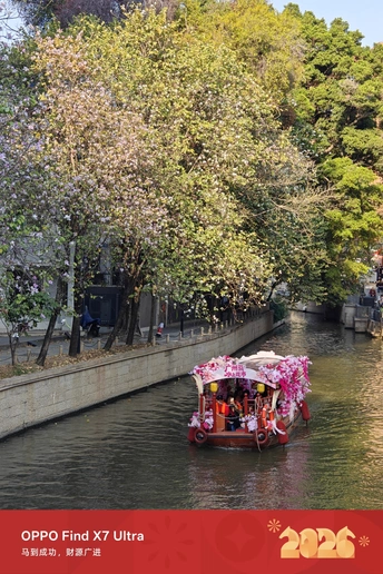 花船摇醒岭南春,汉服映水,琴音绕湾,荔枝湾畔年味最撩人。 从永庆坊9号码头到文塔码头装饰着缤纷年花的花船缓缓穿行碧波之上,古韵悠扬 漫步花岸、泛舟水上一边赏繁花似锦一边沉浸式感受旧时西关的诗意年味这才是广州过年的正确打开方式!