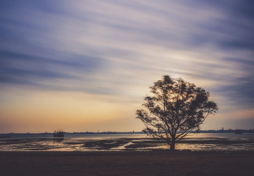 在湛江霞山区景色宜人的观海长廊上,有棵孤独的树,宛如遗世独立的守望者,独自静对海天。 清晨,当柔和的曙光洒落,长曝光摄影发挥奇妙效果,光线渐渐晕染,为树披上神秘纱衣。树干纹理更显清晰,似在低诉岁月故事。伸展的树枝和天空交织,构成绝美画面,整棵树被浓郁的氛围感环绕,引得人驻足感受其孤独的独特美感。
