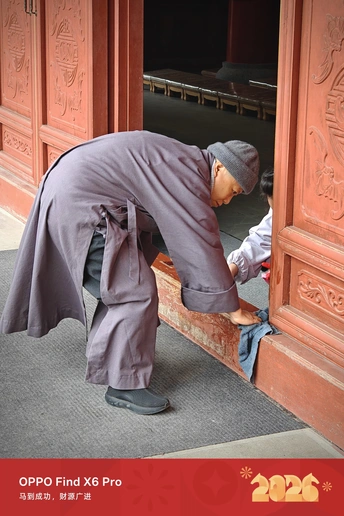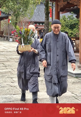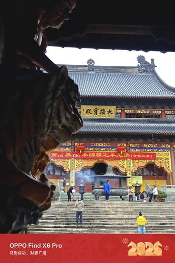 大年初一全家祈福,虽每年都至,但今年院内新栽种的梅花开的茂盛,寺院独特的香火气和梅花暗香交错,沁人心脾,宁心安神!绽放的腊梅映衬寺院,就是开在黄墙黛瓦间的禅意与炽热。枝头装饰红灯笼也是绝佳的色彩点缀。红、黄、粉三色交织,是 2026 马年蕞红火的开年配色。 大雄讲寺的始建年代存在不同记载:一说始建于五代后晋天福二年(937年),原名“保安院”,北宋治平二年(1065年)更名为“大雄讲寺”;另据其他史料,其历史可追溯至东汉或东晋时期,南宋嘉定八年(1215年)因祈雨灵验而声名大振,成为天台宗重要道场。近代曾因历史原因被毁,1995年起由尼师演云法师募化重建,现为余杭区最大的尼众(女众)道场,延续天台宗“止观双修”法门。