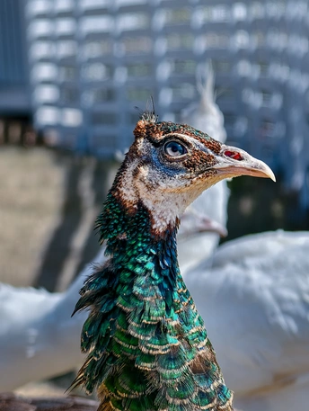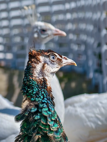 当自然的调色盘,落在这群生灵的羽衣之上,便有了褐羽的沉郁、绿颈的流光,与白羽的圣洁。 在宁波的暖阳里,我用vivo X200 Ultra,捕捉到孔雀们最本真的姿态: 有昂首阔步的骄傲,有静卧休憩的安然,有低头啄食的专注,也有顾盼流转的温柔。 每一根羽毛的纹理,都在诉说着生命的力量;每一次眼神的交汇,都在传递着自然的诗意。