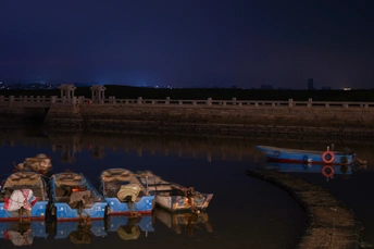 除夕之夜,洛阳桥褪去白日喧嚣,在黛色暮色中静卧如练。这座宋代古桥承载着八百年潮起潮落,此刻与归港的渔船相映。渔火微光揉碎在粼粼水波里,千年石栏守护着人间团圆。旧岁的余韵随潮汐远去,新年的祈愿已在古桥的石缝中悄然生根。