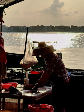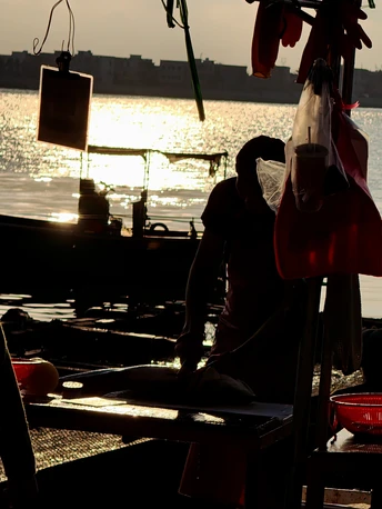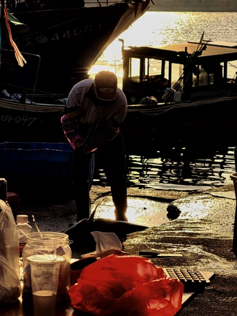 海南文昌的铺前码头坐东朝西,是盛产海甘鱼的故乡,每到回船的午后,码头前面的那片海便在热烈的阳光下忙碌起来,我试图通过一条鱼为主线,从归航、捞鱼、处理、售卖、收拾、小憩、休息,到再次出海的劳作生息规律。在阳光的照耀下,这悠悠的渔人时光散发着浓烈的生活气息,也是努力工作与热爱生活的炽热见证!