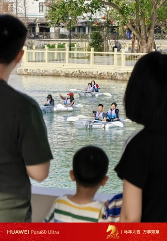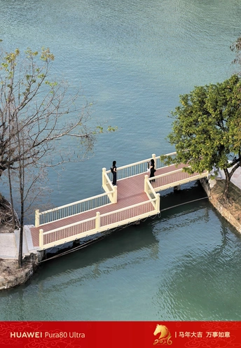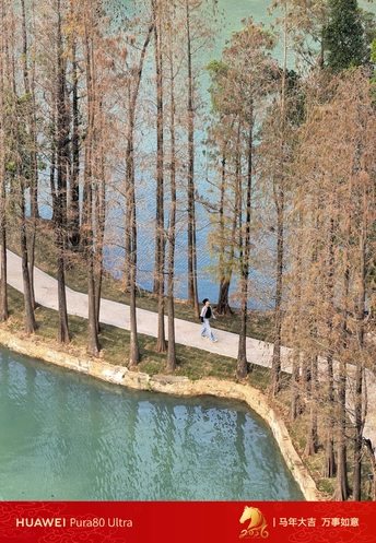 石桥拱着旧时光, 新楼在身后叠起日常。 水面浮着黄鸭的憨态, 桨声剪开一湖青绿。 水杉把影子斜斜铺在岸, 有人从林间走过, 把春天踩成细碎的声响。 落日漫过楼宇, 把云染成熔金, 把远山晕成淡墨。 风里有花草的余香, 也有马年的新愿, 轻轻落在每一寸人间。