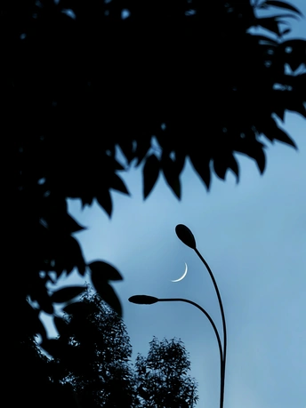 夜幕轻垂,深蓝的底色晕染开来。树影在风里悄悄晃动,似在诉说着不为人知的秘密。路灯微微弯着腰,以沉默的姿态守护着这片宁静。