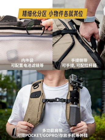 相信大家在城市漫拍中总会被这些问题劝退:装不下额外装备、找小配件翻半天、背久了肩膀酸… 点摄漫途RoamWay摄影包的隐藏技能,直接把城市漫游体验拉满! ✅32L→35L双区扩容,突发需求全接住 顶部+前幅双重扩容!想多带件外套、稳定器,甚至小型三脚架都能塞下,短途出行/出差漫游不用纠结“带什么”,随心装超省心~ ✅可拆卸腰带,减负不压肩 长时间穿梭街巷、逛咖啡馆?装上腰带分散重量,背几小时也不酸肩;日常通勤拆下更轻便,场景适配超灵活! ✅精细化分区,小物件各就其位 ▪️内袋放15.6寸电脑,修图传素材超方便 ▪️前袋容iPad,路上刷教程、处理工作不耽误 ▪️侧袋分仓:左装镜头布,右存储存卡,不丢不刮花 ▪️内件袋收纳电池、滤镜,随手就能换 ▪️肩带可挂GoPro/手机,手提侧带能固定拉杆箱,出差漫游超省力! 夜巡黑、光绯红、暖尘米三色颜值在线,背着穿梭老街、商圈都百搭~ 从扩容到收纳再到减负,每处细节都懂城市漫拍需求,不用浪费时间翻包,专注捕捉街头惊喜! 城市漫游的快乐,就是不被装备束缚~ 这款藏满巧思的漫途包,闭眼冲就对啦!