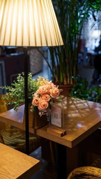 ✨ 自然与光影的共舞 👉 暖黄灯光透过百褶灯罩,在绿植叶片上切割出流动的光斑🍃,水晶杯里的纯净水折射着菱形棱镜般的碎光💎,木质桌面的纹理在明暗间成为天然画框。 👉 仿真绿植墙以3:2的黄金比例分隔空间,深浅不一的绿色层次模拟热带雨林的生态密度🌳,让每口呼吸都带着湿润的草木气息。 💡 细节里的情绪设计 - 桌花选择饱和度30%的香槟玫瑰,搭配尤加利叶的灰绿调,在暖光下呈现莫兰迪色系的温柔过渡🌸 - 藤编花盆与金属灯架形成材质碰撞,粗粝感中和了玻璃器皿的精致,构建出「克制的浪漫」美学 🌙 时间在这里慢下来 当城市霓虹在叶片间隙模糊成光斑,水晶杯壁凝结的水珠滴落桌面的声响,成为唯一的计时单位⏳。我们总在追逐宏大叙事,却忘了让目光停留在光影交织的瞬间。 光与影从不争夺空间,只是在某个角落达成永恒的和解。