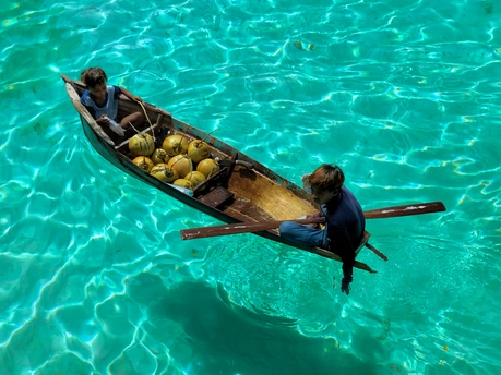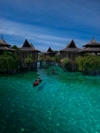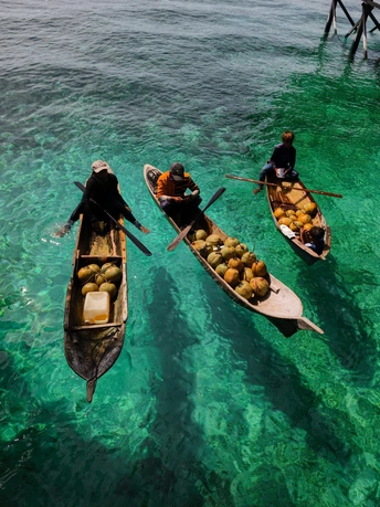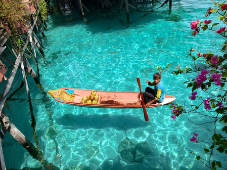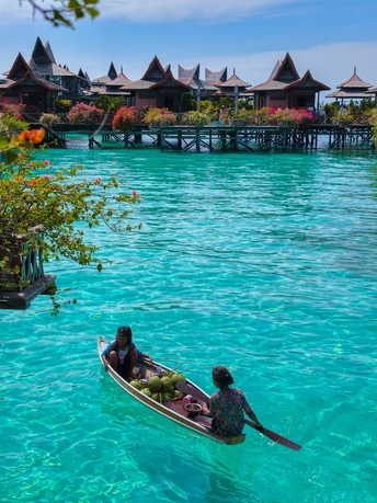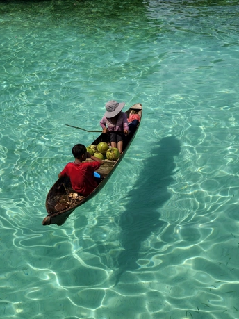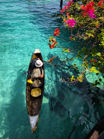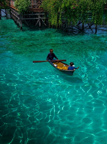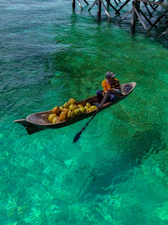 从水屋的错落屋檐,到独木舟上的椰子、海鲜与身影, 镜头里藏着仙本那的两种模样: 一边是度假者的乌托邦, 一边是海上游牧民族的日常。 澄澈的海水是共同的底色, 木与海的对话, 在每一道波纹里, 写着关于生存与诗意的故事。
