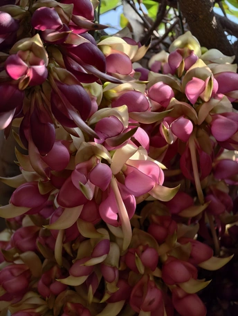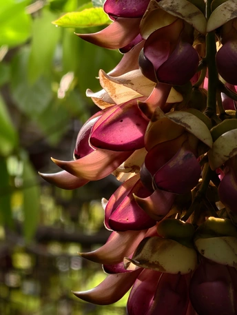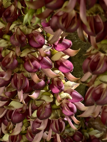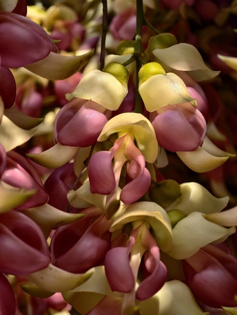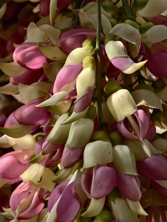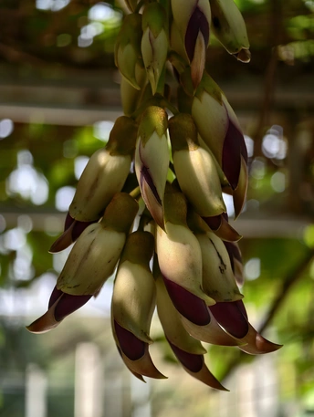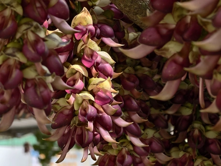 藤蔓垂垂,缀满万千雀羽。花苞初绽时,青褐裹着深紫,似雀儿敛翅待飞;盛放之际,粉紫与米白交织,瓣尖如喙,瓣身似翼,簇簇垂悬,宛若群雀栖枝,灵动欲语。 光影漫过花廊,暖光轻吻花瓣,紫韵晕染,层次分明。绿影衬得花色更艳,微风拂过,花串轻摇,似雀鸟振翅,簌簌有声。花廊之下,孩童轻触花穗,眉眼澄澈;游人驻足留影,笑语盈盈。生灵与繁花相映,烟火与自然相融,春日的温柔与生机,尽在这一方禾雀花境之中。