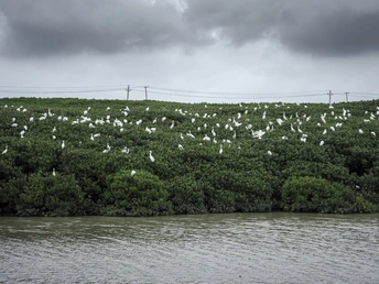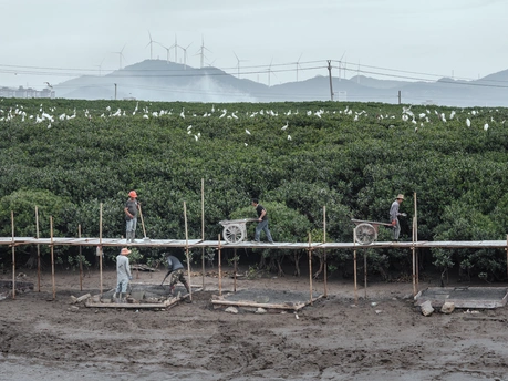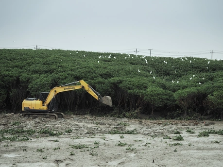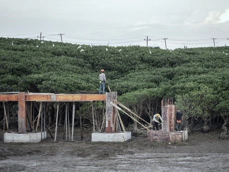 这组纪实作品,是我在福建福清湾红树林湿地的长期拍摄记录,核心围绕「边界、入侵、共生」三个维度,以镜头为媒介,探讨当代社会里,人与自然最本真、也最复杂的相处形态。 我们总习惯为世界划定清晰的边界:滩涂与海水的交界,红树林原生生态与人类活动的分野,千百年延续的赶海生计与现代工业文明的隔阂。当重型挖掘机驶入滩涂,钢筋桩基扎进湿地,我们本能地将这种对边界的打破,定义为「入侵」—— 对原生生态的扰动,对自然领地的挤占。一旁「保护福清湾湿地,为候鸟留下家园」的标语,更让这种介入,充满了当代性的悖论:我们总以保护之名,行改造之事。 但在持续的拍摄里,我最终看见的,从不是非黑即白的对抗,而是这片土地上,复杂而鲜活的共生:空置的施工脚手架,成了白鹭歇脚的新枝桠;新建的观光栈道,成了人与自然对话的新通道;赶海的渔民与成排的基建桩基,在同一片滩涂上,共享着潮汐的起落与土地的馈赠。 入侵终会落地,边界总被重构。我无意用镜头做批判或歌颂,只想以冷静的纪实视角,记录下这个时代最真实的生态命题:人与自然的相处,从来不是固守边界的对立,而是打破边界之后,在同一片土地上,寻得共生的可能。