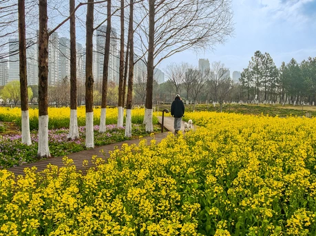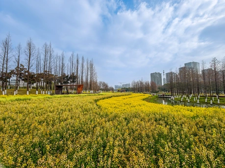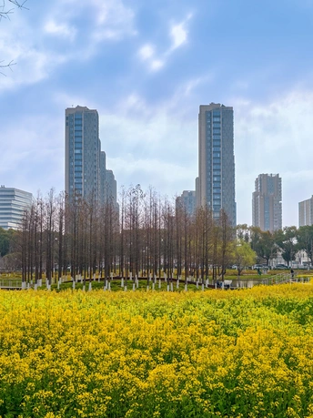 城央一隅,春已盛景。 水杉为幕,花海为诗,在高楼之间,遇见一整片金色温柔。 风拂花梢,光影流转, 不必远行,春光就藏在这座城市的烟火里。 用镜头框住此刻,便是人间最好的时节。