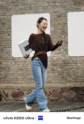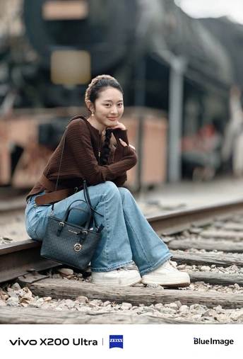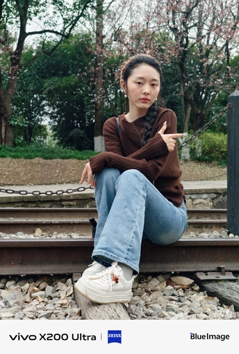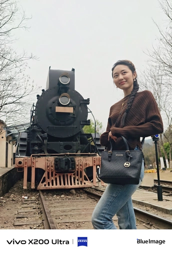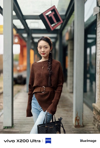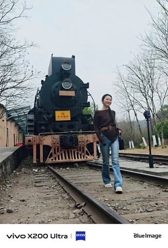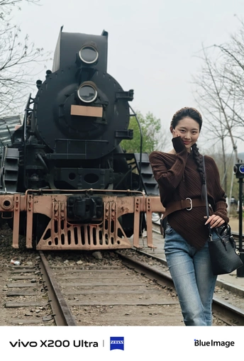 用vivo定格白塔公园的秋日氛围感, 老铁轨与复古砖墙作背景, 焦糖色毛衣在光影里格外温柔, 每一张都是杭城独有的慢生活。