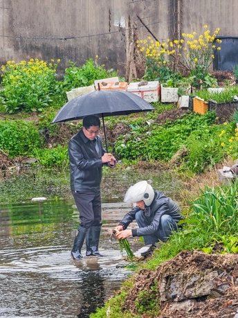 春雨淅沥,浸润了宁波前徐村的每一寸土地。 青瓦老屋、湿滑巷口、劳作的老人、翻耕的泥土, 还有挂在花瓣与菜叶上的水珠,都是江南乡野最本真的模样。 用vivo镜头接住这场春雨,把小洋江畔的烟火与生机,都收进框里。