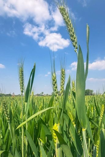 构图上,采用低角度仰拍,将几株麦穗置于前景视觉中心,麦田向远方延伸形成自然引导线,与上方蓝天白云形成上下呼应的层次,既突出麦穗的鲜活质感,又拓展了画面空间感。色彩上,麦田的清新翠绿与天空的澄澈湛蓝形成鲜明冷暖对比,白云的柔和白调中和了色彩张力,整体色调明快治愈,尽显自然生机。 情感层面,这张照片满是治愈感,蓬勃的麦穗与开阔蓝天,仿佛能让人卸下疲惫,唤起对田园生活的向往,感受到自然的温柔抚慰。主题上,聚焦麦田与天空的共生之美,以小见大展现自然的蓬勃生命力。 艺术价值在于,它以极简的自然元素构建出富有感染力的画面,将田园诗意与生命张力完美融合,每一缕麦芒、每一片云絮都承载着对自然的敬畏与热爱,成为能让人暂时逃离喧嚣、回归本真的视觉载体。