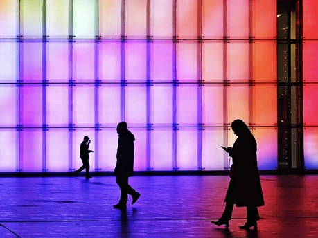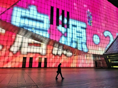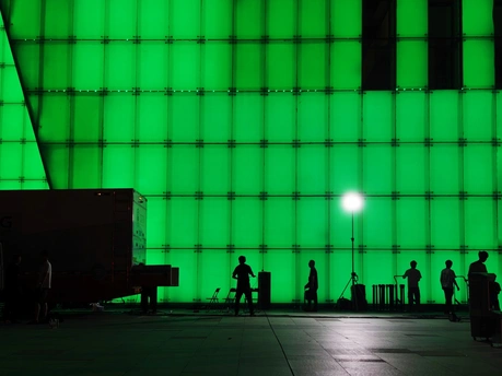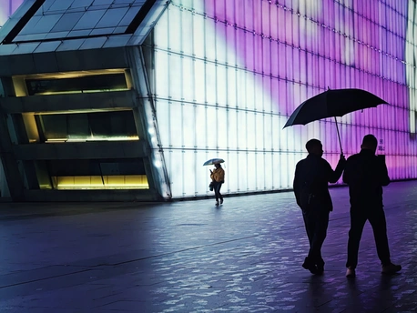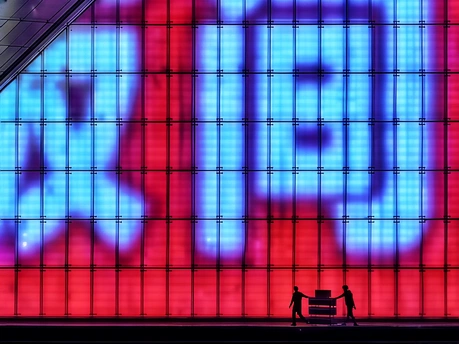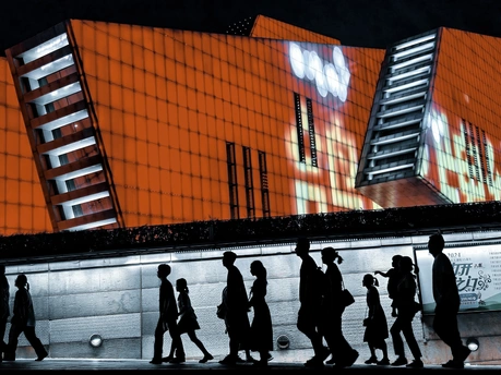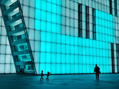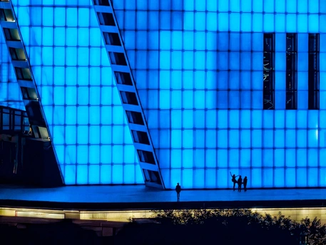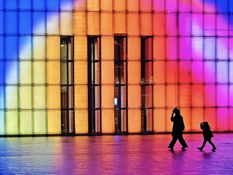 重庆大剧院的玻璃幕墙,是城市最温柔的调色盘。红与蓝碰撞出雨夜的浪漫,青与绿晕染出夏夜的清凉,粉与橙交织成黄昏的温柔,色彩在建筑上流转,故事在光影里生长,每一个匆匆的脚步,都在这座光的舞台上,写下属于自己的生活注脚。